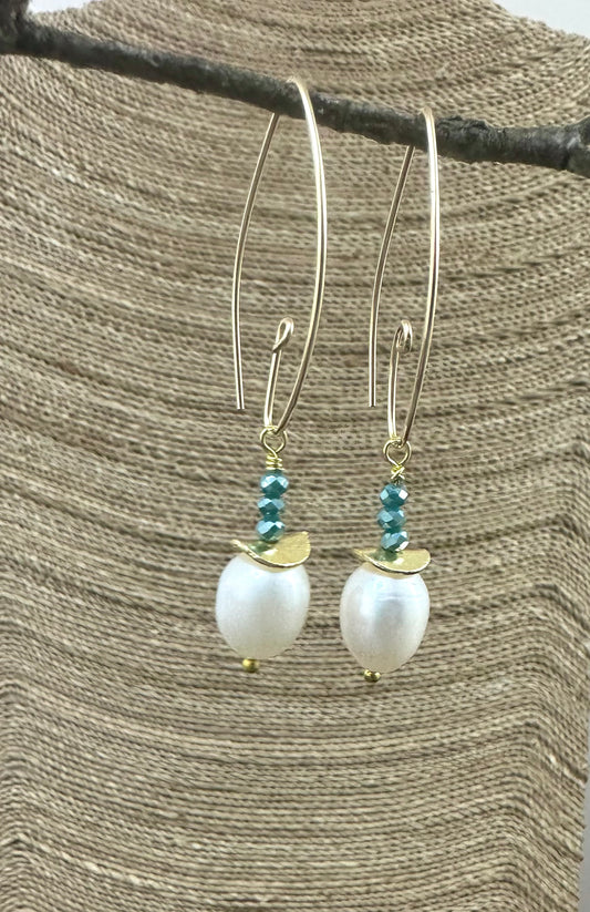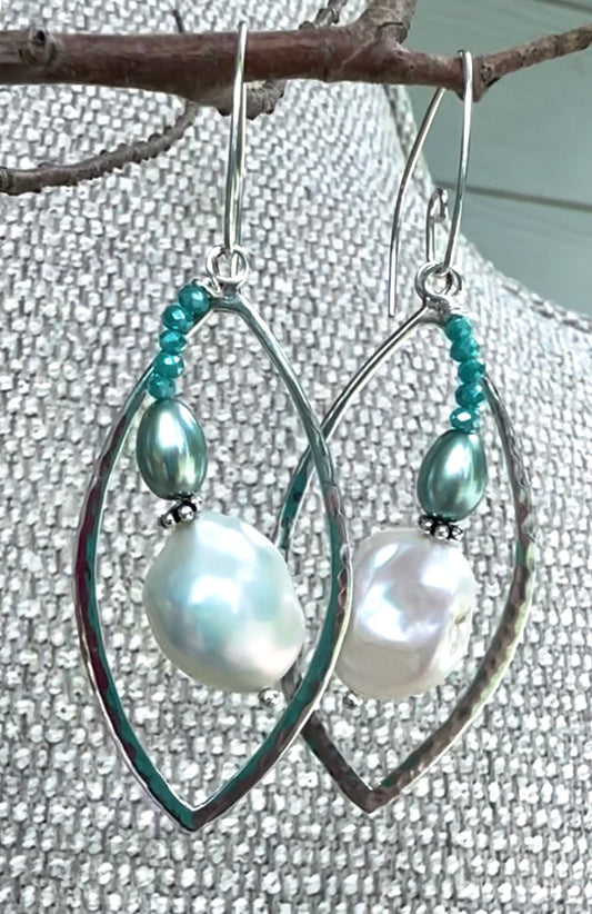Pearl and Crystal/Stone Earrings (Coral, Teal & Amazonite)