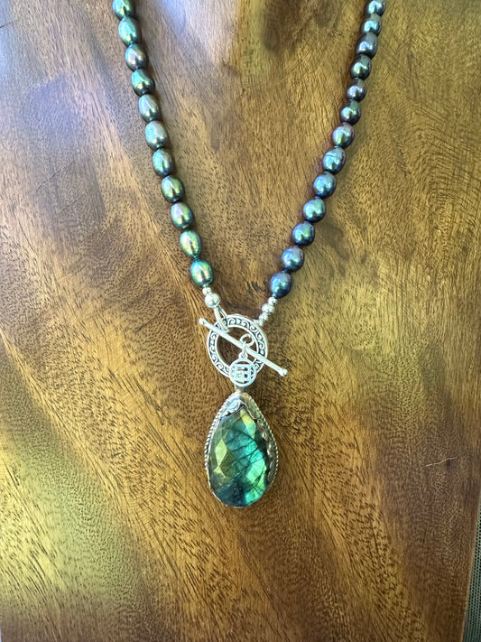 Desert Druzy with Gray Peacock Pearls (sold as set)