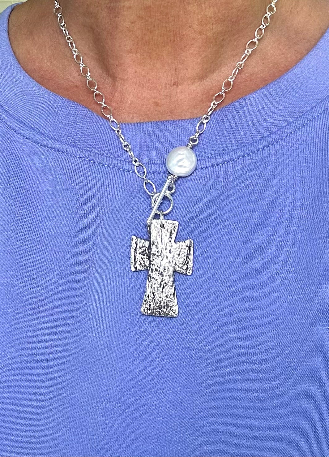 • All sterling chain and toggle front closure with a single coin pearl accent
