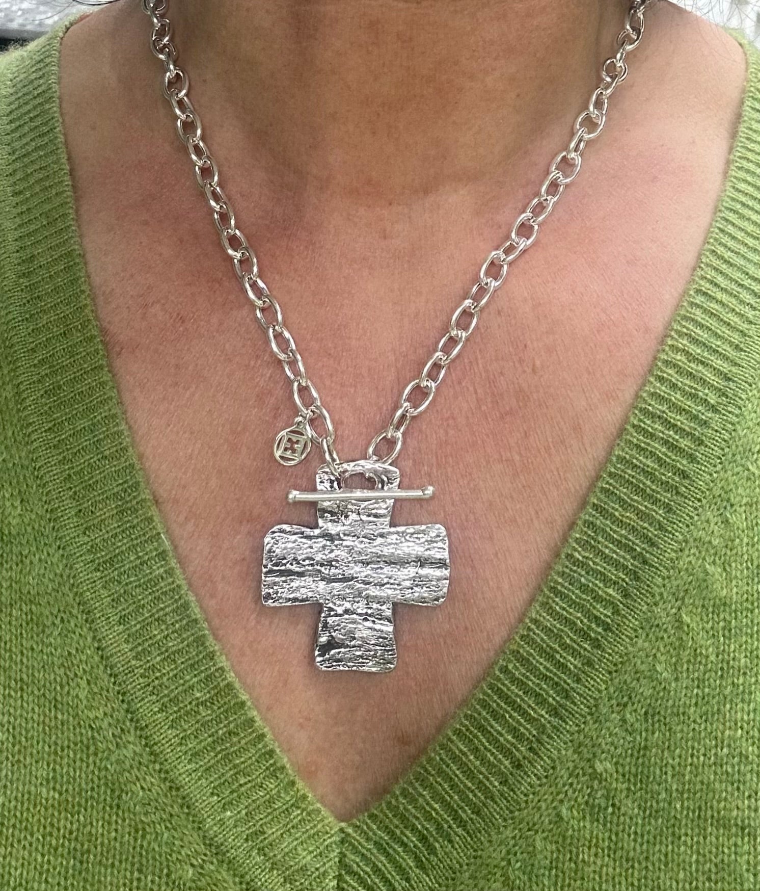 This is Ettamarie’s Palm Bark impression cross necklace, a sweet reminder of paradise!