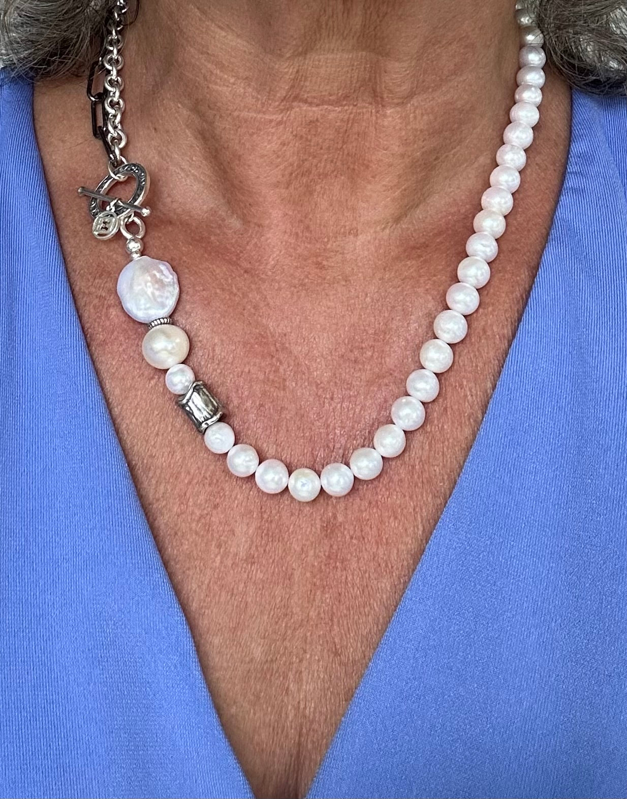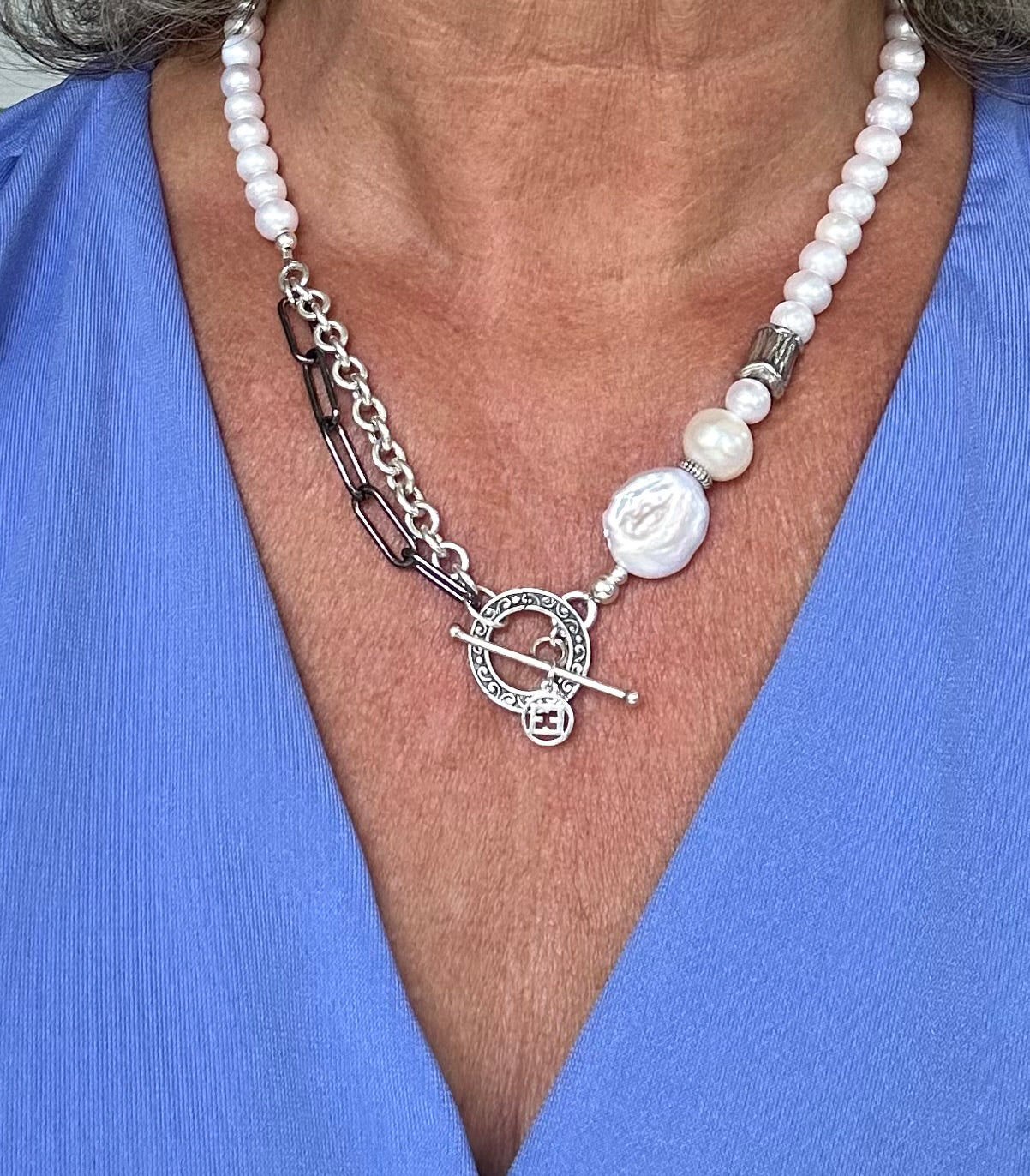 • Sterling silver circle clasp that hinges open to be able to wear pendants on as well