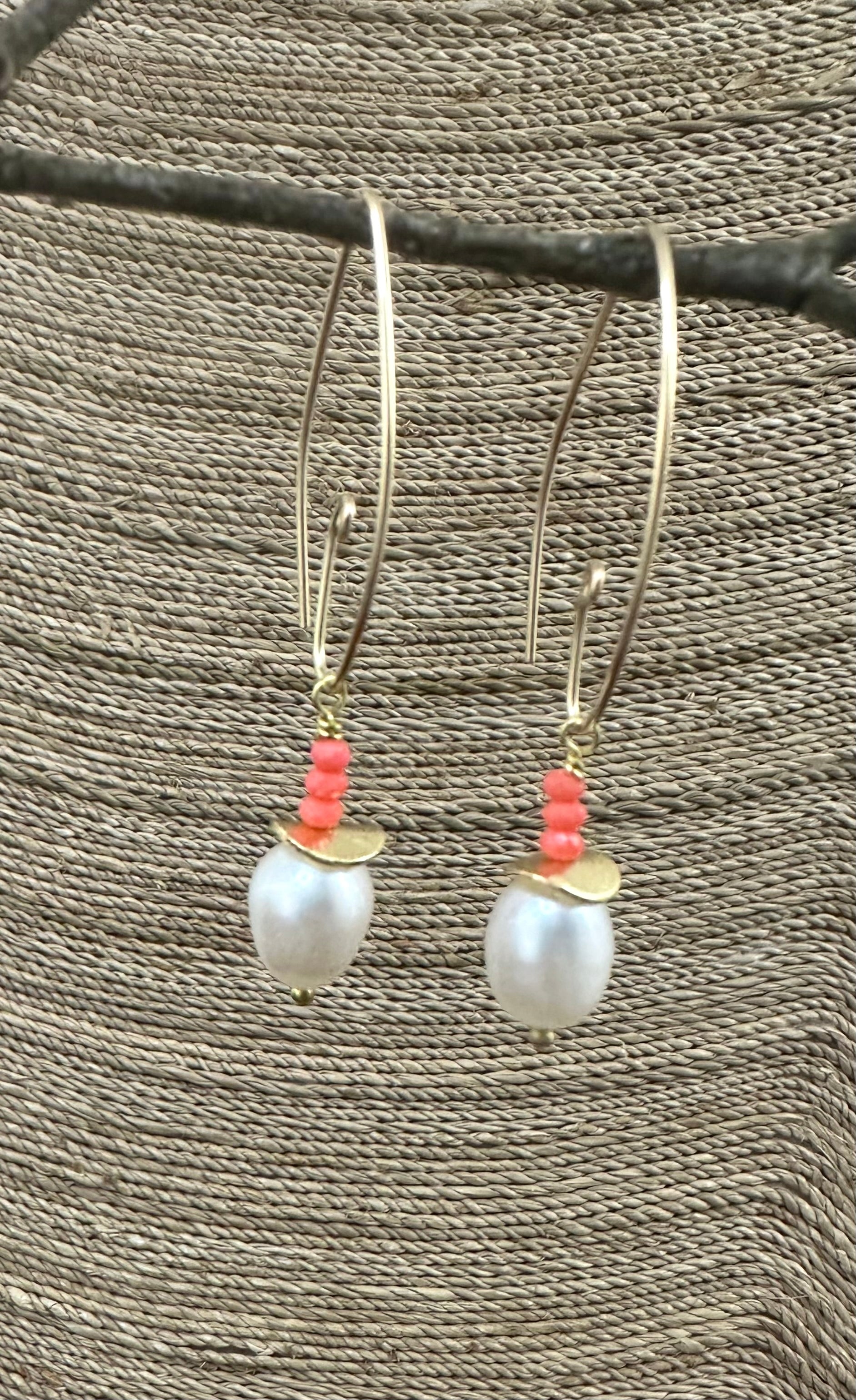 Pearl and Crystal/Stone Earrings (Coral, Teal & Amazonite)