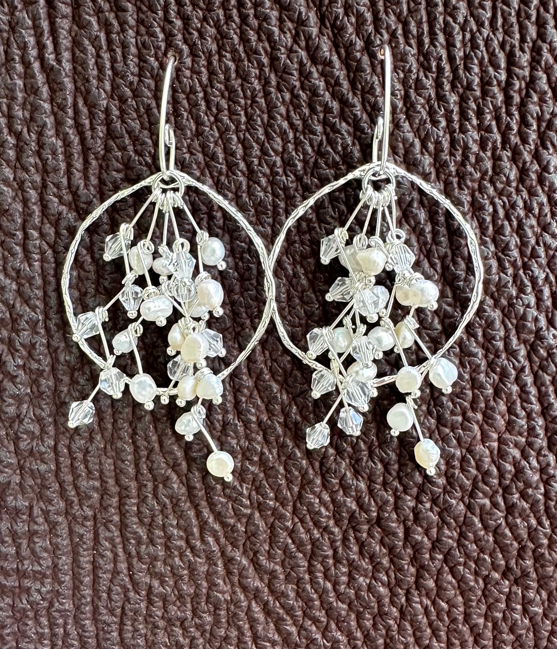 • Cascade of freshwater pearls and clear crystals