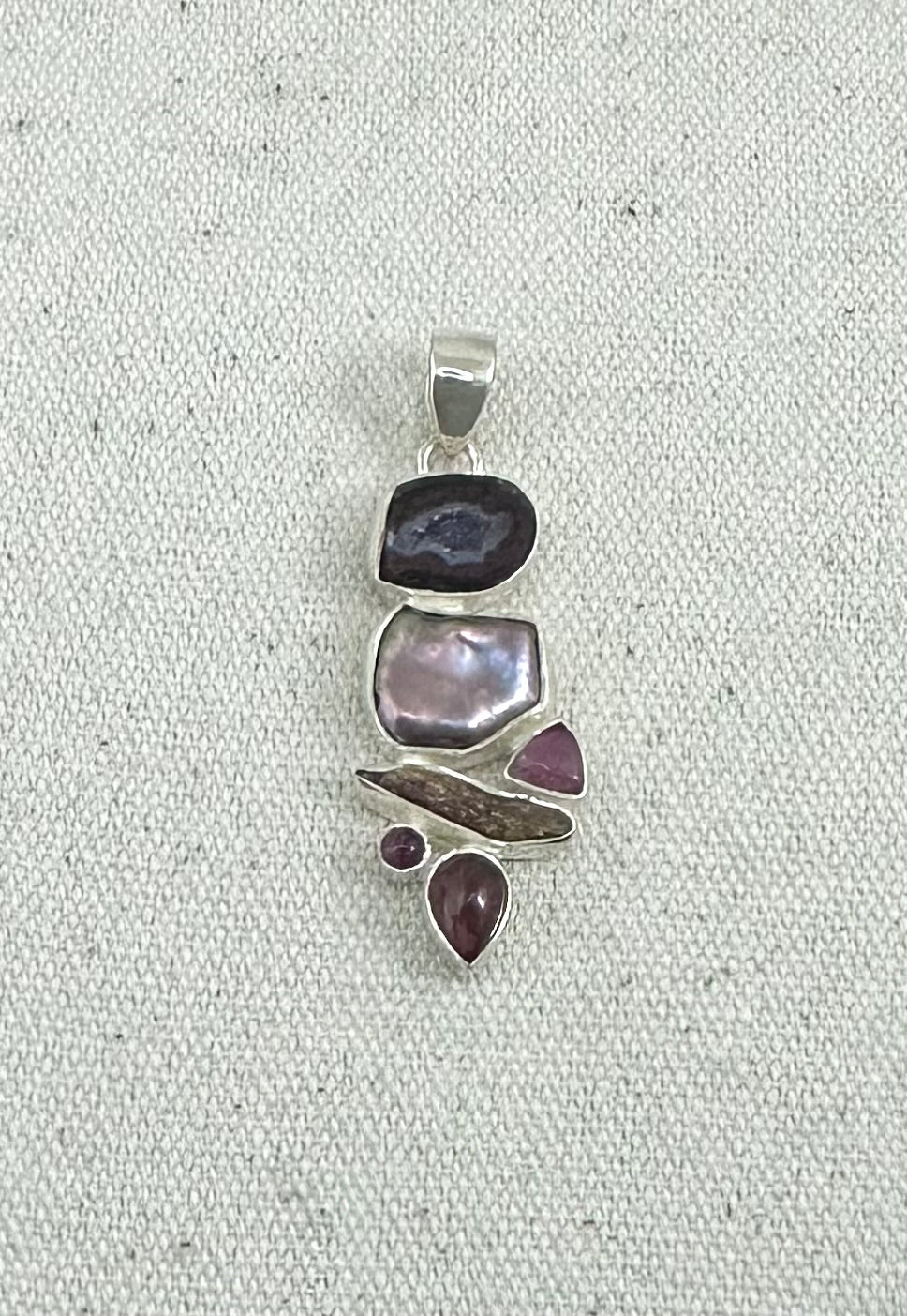 • Natural geode, pinkish peacock irregular pearls, multi tourmalines