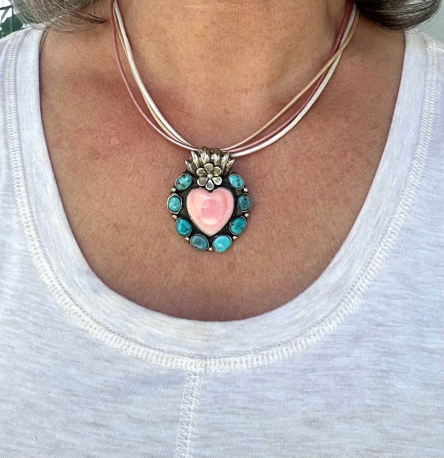 Turquoise with Pink Conch Heart Necklace